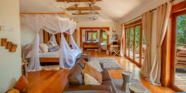 Den Reisenden bieten sich in dieser Lodge 16 luxuriöse Chalets zur Einzel-, Doppel- oder Dreierbelegung. Jedes Häuschen verfügt über eine eigene Terrasse, von der sie die wunderbaren Ausblicke in privater Atmosphäre genießen können. Eine artenreiche Vogelwelt tummelt sich in den umliegenden Bäumen und erfüllt die Luft mit einem Zwitschern, dass Sie nie wieder missen wollen.