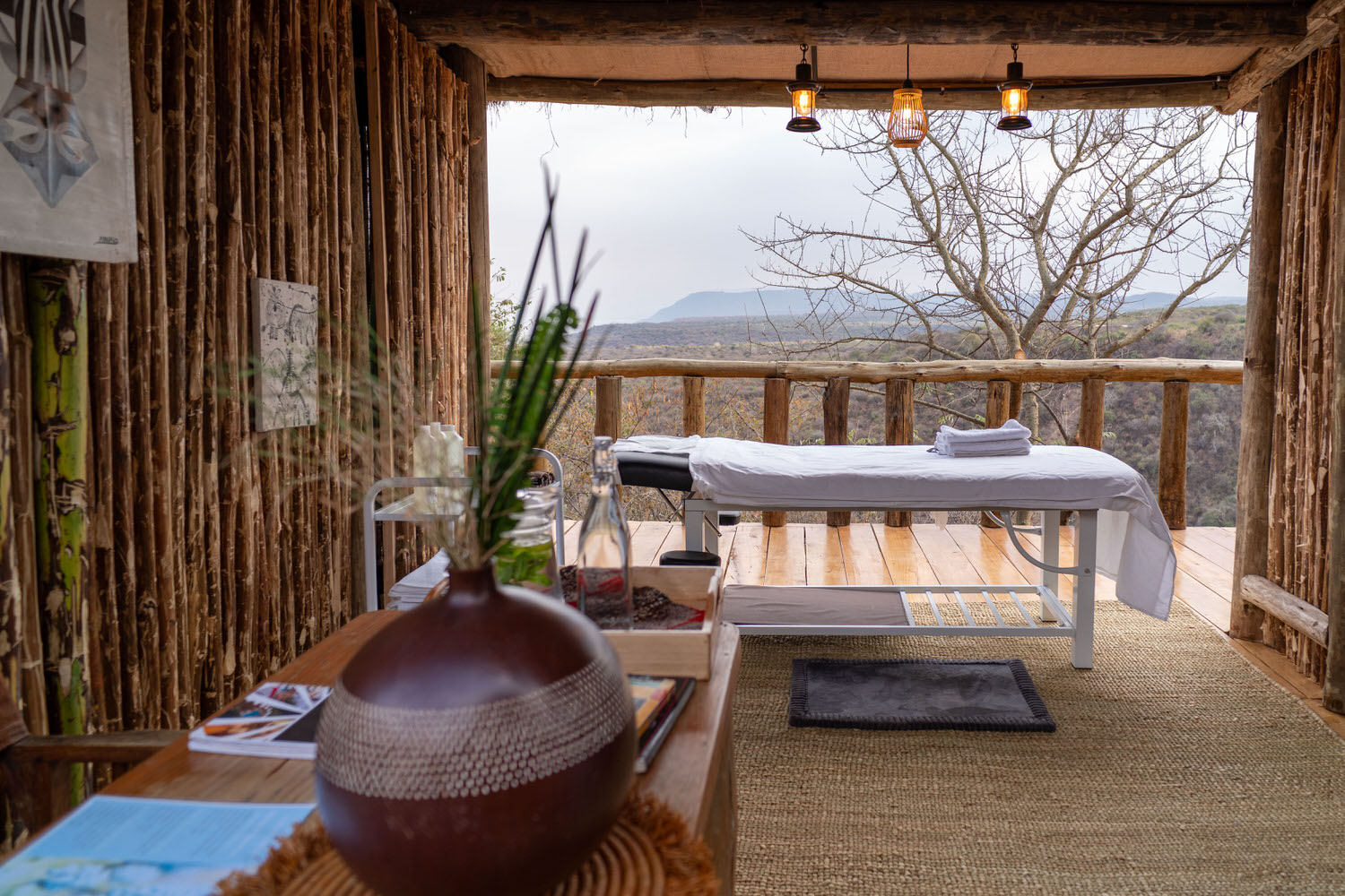 Wachen Sie zu den entfernten Klängen hölzerner Kuhglocken auf, bevor Sie in einen neuen, abenteuerreichen Tag starten. Von den Massai gefertigte Artefakte vervollständigen die Zimmereinrichtung. Jedes der Chalets verfügt über je eine Dusche im Innen- und Außenbereich.