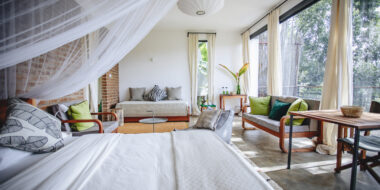 Idyllisch liegt die Kaliwa Lodge inmitten der faszinierenden tropischen Vegetation des Bergregenwaldes, mit seinem ewig milden Klima.