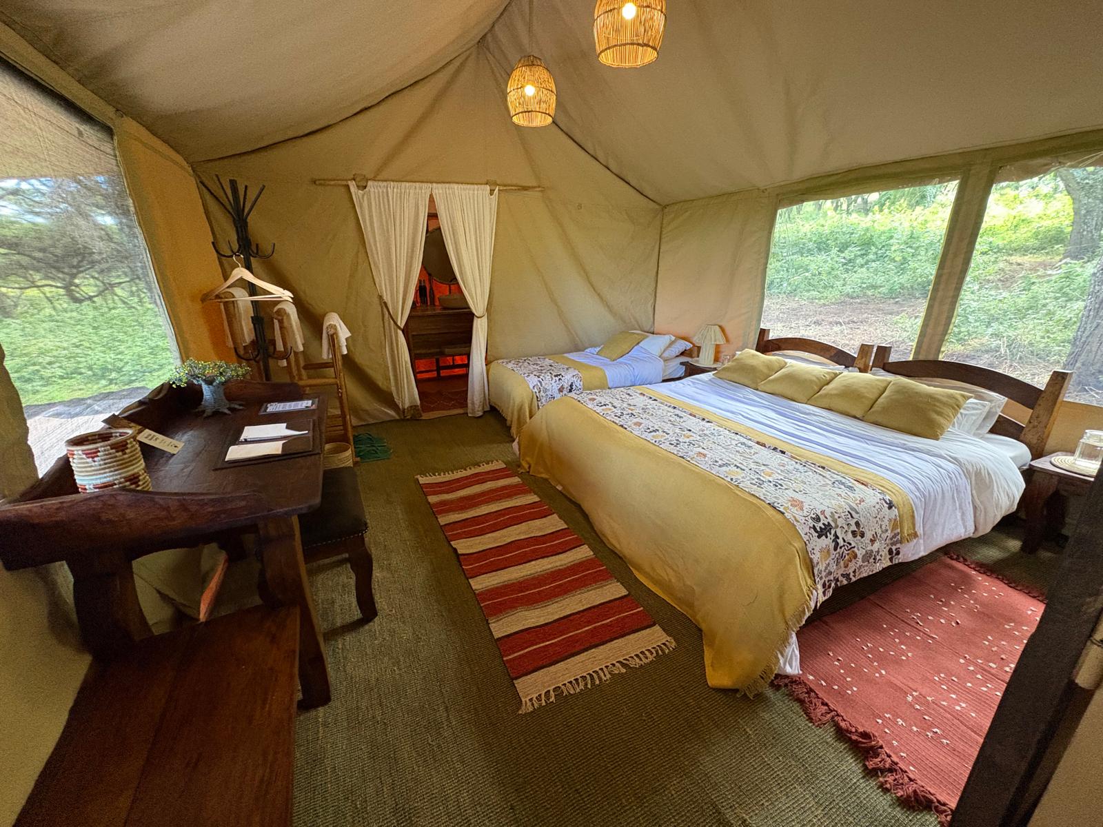 Das Mysigio Tented Camp liegt abseits der Hauptwege der Ngorongoro Conservation Area nahe dem kleinen Maasai-Dorf Mysigio und bietet Ruhe, Natur und Komfort inmitten weiter Hochlandlandschaften. Die großzügigen, eco-luxuriösen Safari-Zelte verfügen über eigene Bäder mit warmen Duschen und privaten Veranden, von denen aus man die sanften Hügel und die unberührte Umgebung genießen kann. Das Camp wurde bewusst nachhaltig gestaltet und nutzt ausschließlich Solarenergie, was eine naturnahe und zugleich komfortable Atmosphäre schafft.